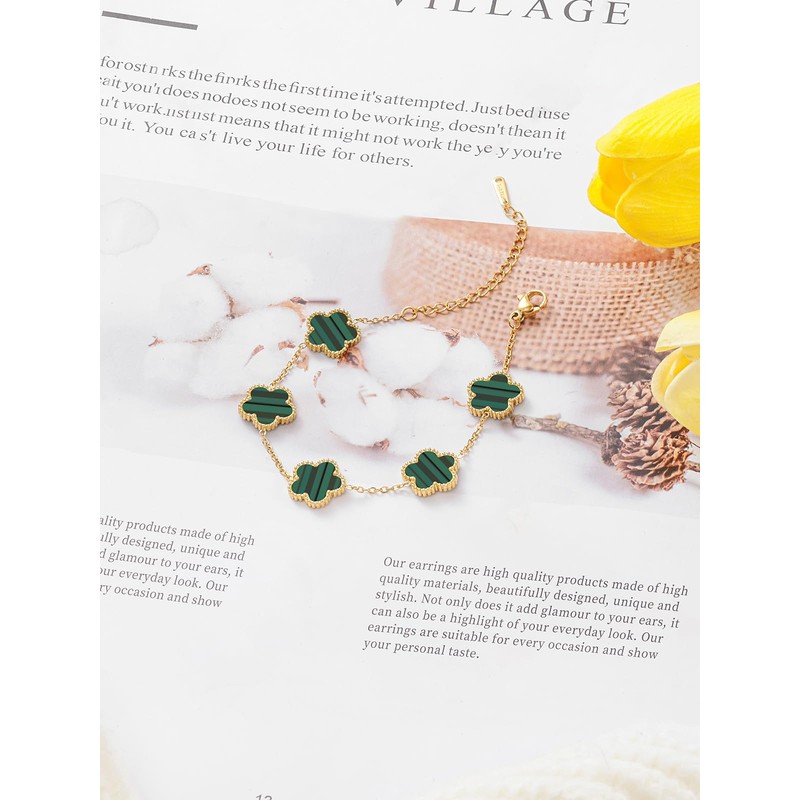- The Perfect Clover Bracelet! These Handmade Stunning Bracelets Are Made with Plastic and Are Plated in 14K Glod to Ensure a Long Lasting Finish That is Nickel Free, Lead Free, and Hypoallergenic.