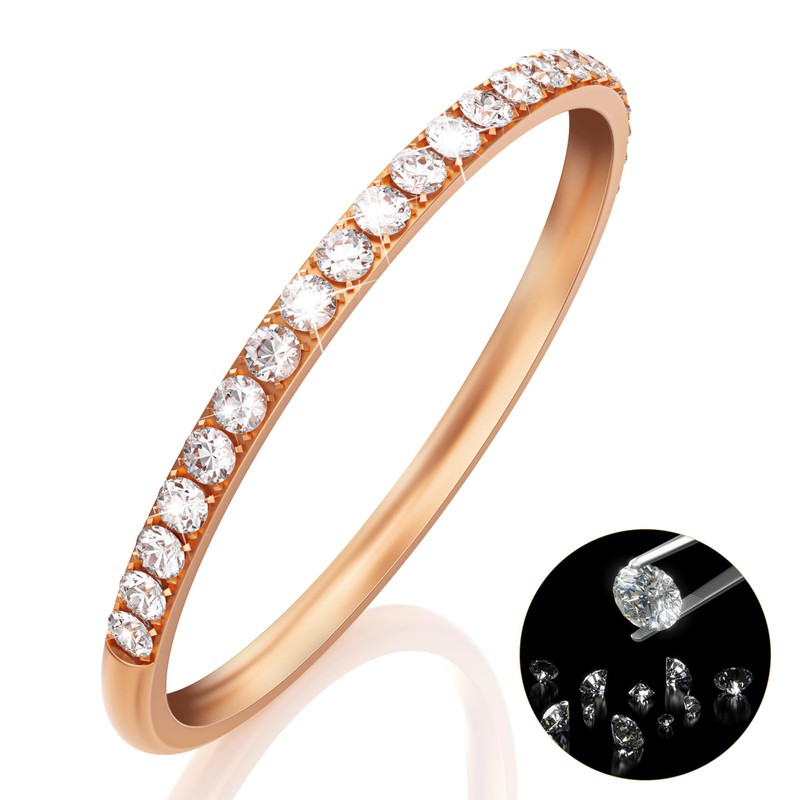 14K Gold Plated Rings Comaptible for Oura Ring 4/Gen 3 Stacking Ring, Non Tarnish Cubic Zirconia Simulated Diamond Stackable Sterling Eternity Bands for Women - Rosegold - Size 7