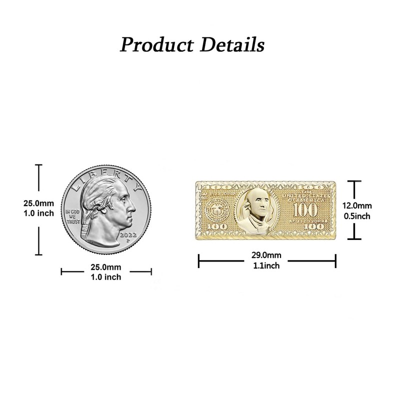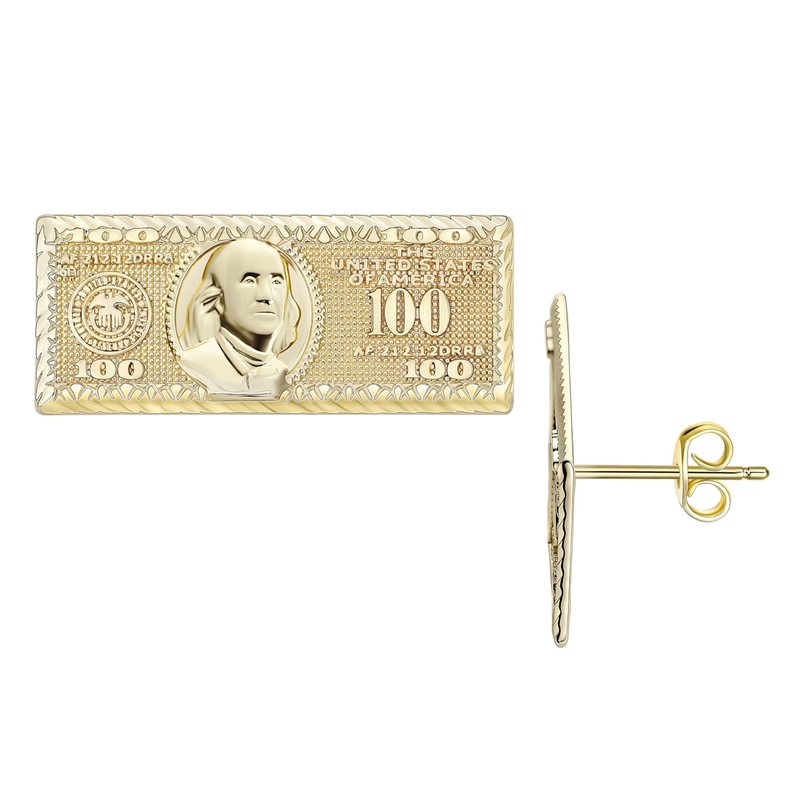 - 【Personal Design】Add a Touch Of Luxury To Your Style With These 14k Gold Plated Brass 100 Bill Money Stud Earrings. Crafted For Both Men And Women, These Earrings Feature a Detailed 100 Bill Design That Showcases Your Unique Taste. Perfect For Daily Wear Or Special Occasions, They Are Secured With a Push-Back Closure For Comfort And Security. These Earrings Make a Standout Gift For Anniversaries, Birthdays, Or Any Celebration.