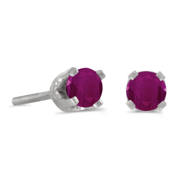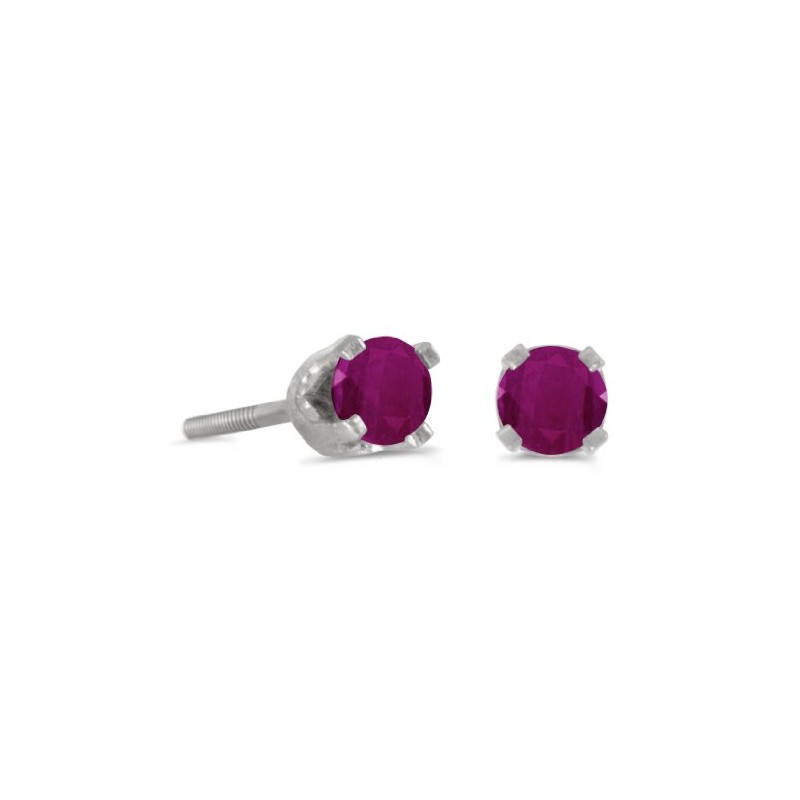 These 14k petite white gold round ruby screw-back stud earrings feature 3 mm genuine natural rubys with a 0.24 ct total weight.