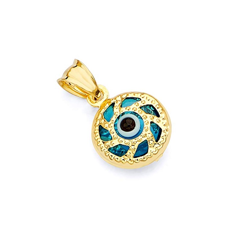 14k REAL Yellow Gold Evil Eye Hamsa Round Charm Pendant