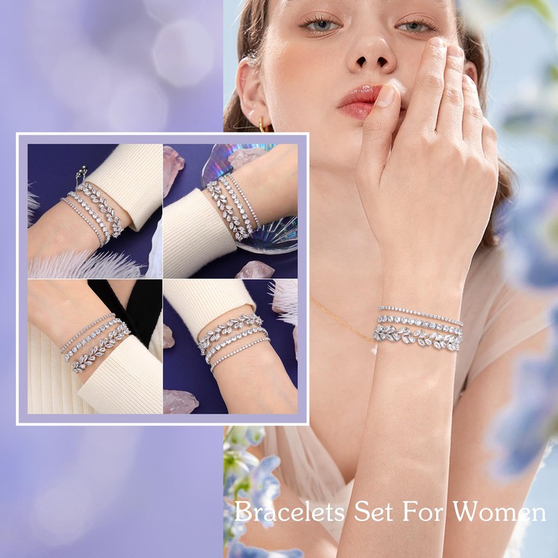 - About style---You will receive 3 different white silver bracelets. You can choose to wear one or a combination.The shape of each bracelet's zircon is different. You can enjoy the unique charm brought by different bracelets.
