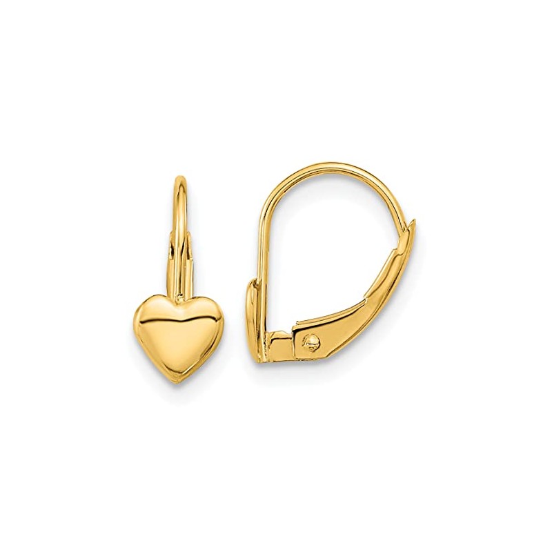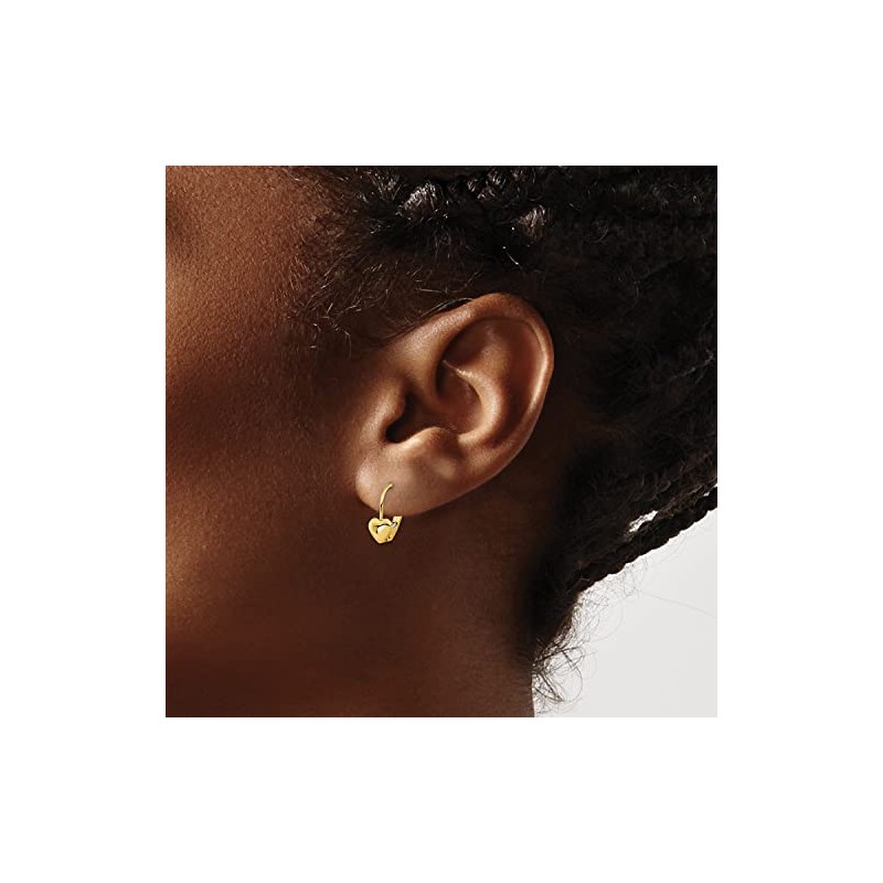 14K Solid Yellow Gold Heart Love Drop Dangle Earrings