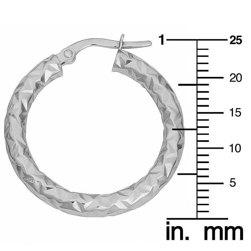14k White Gold 3x20mm Diamond-cut Round Hoop Earrings