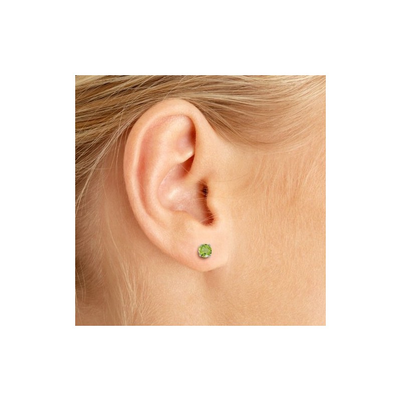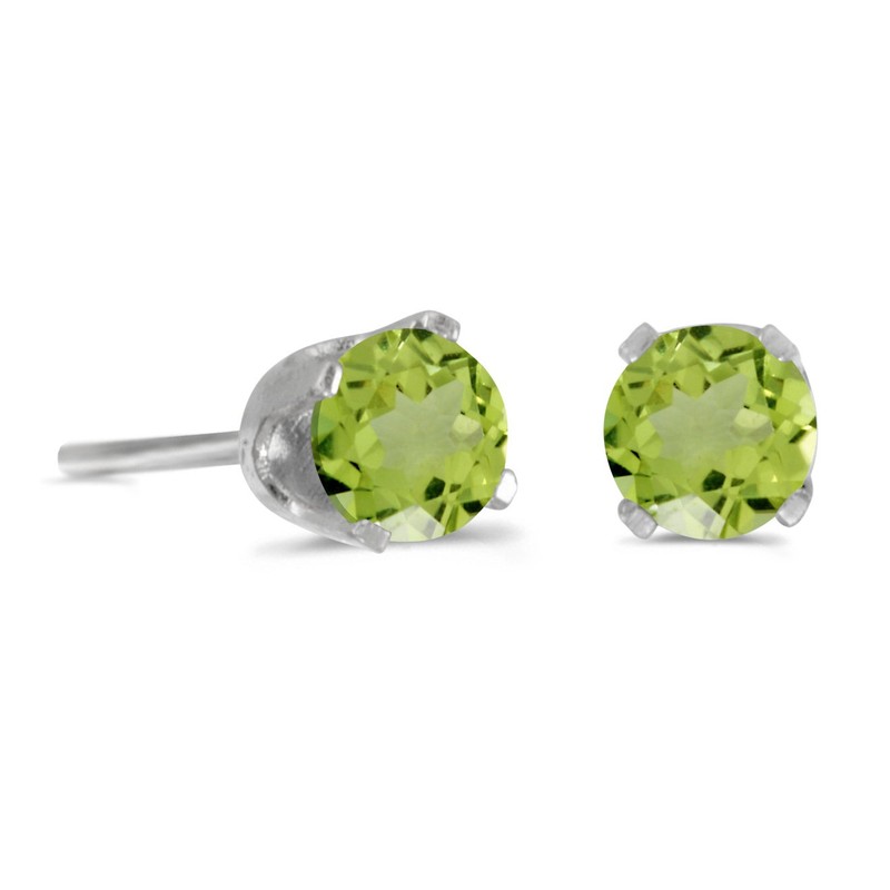 14k White Gold 4 mm Round Peridot Stud Earrings