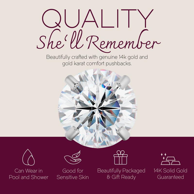 - COMFORTABLE: 4-Prong Basket-Set Style makes a Round and smooth bottom for a comfortable wear and to stand the CZ stone perfect on your ears