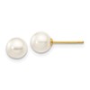 14K Yellow Gold 5-6mm Round White Saltwater Akoya Cultured Pearl Stud Post Earrings