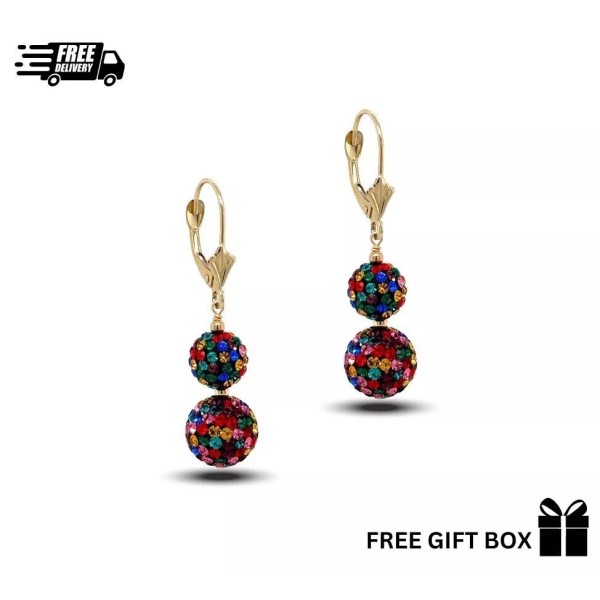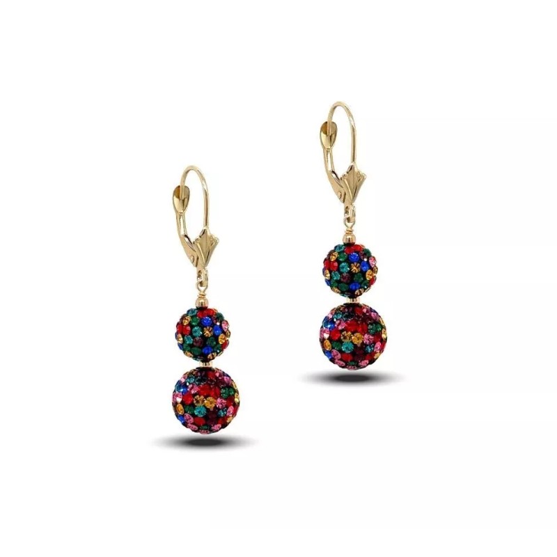 14K Yellow Gold Leverback Dangle Earrings with Genuine Czech Crystals