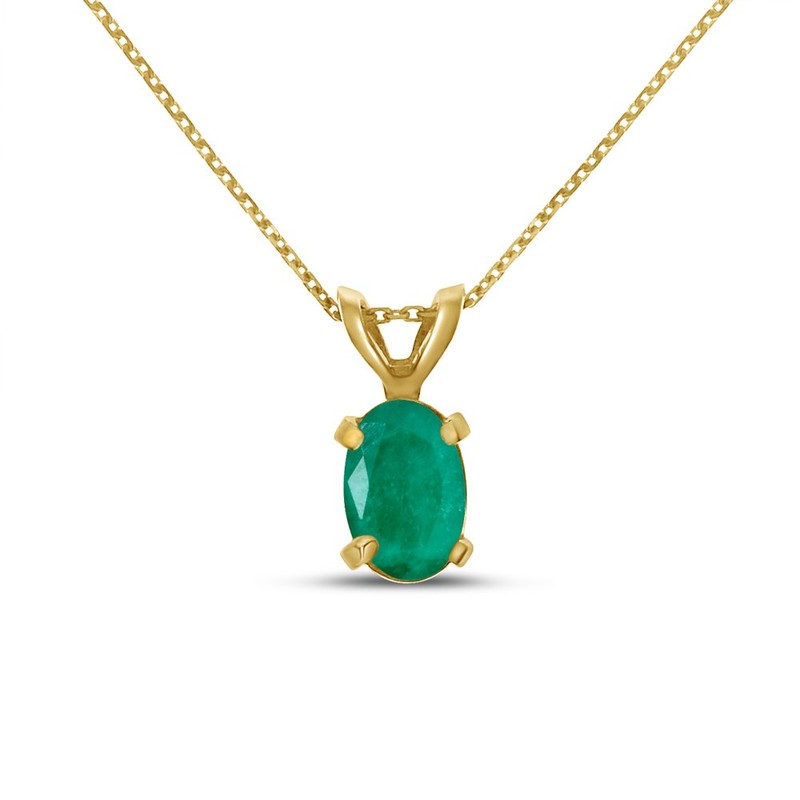 14k Yellow Gold Oval Emerald Pendant with 18" Chain