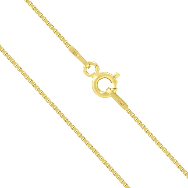 14K Yellow Gold Plated Sterling Silver Chain Necklace for Women Box 0.8mm Responsibly Sourced - Non-Migrating Clasp Design - 14K Yellow Gold Plated Sterling Silver Chain Necklace - Italian Made in Italy - Quality Durable Sturdy 0.8mm Chain for Women - Qu
