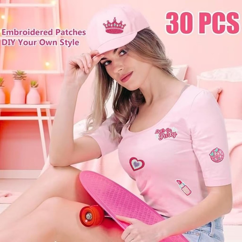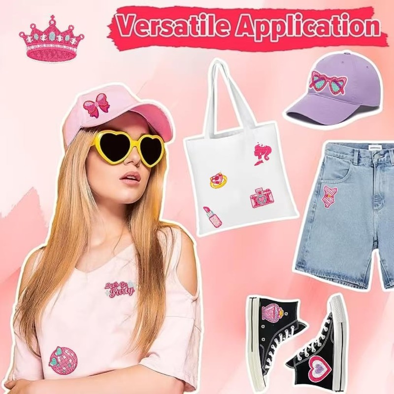 14PCS Pink Embroidered Iron On Patches, Cute Patches Sew On Repair Embroidered Applique Patches for Hats,Jacket, Chothes, Backpacks-DIY Crafts Gift for Girl