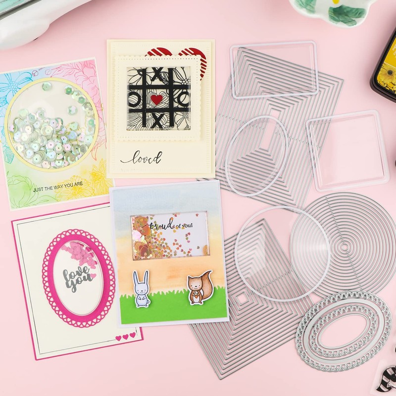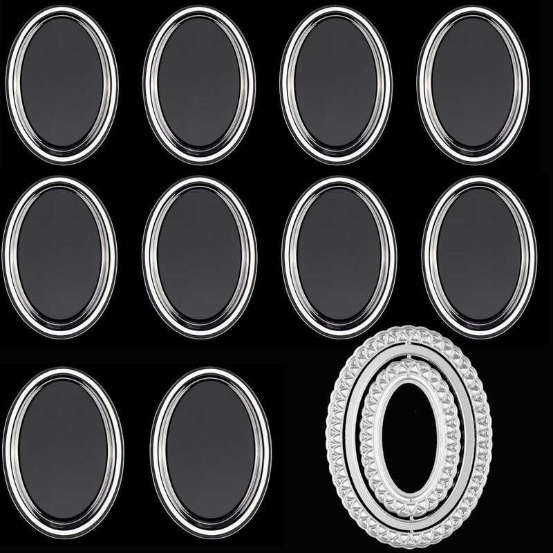 14pcs/set 10pcs 3D Dimensional Shaker Domes with 17pcs/set Ellipse Metal Stencils for Transparent Plastic Dimensional Domes for Shaker Card Making Handmade Crafts