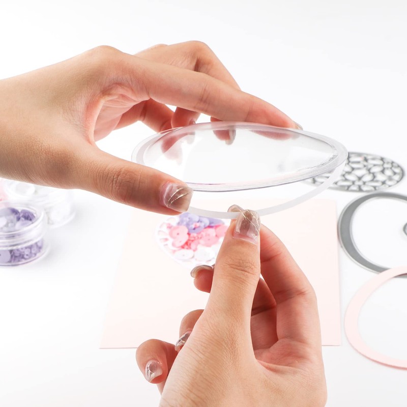 • EASY MAKING The compatible shaker domes are compatible with the coordinating die sets and offer endless creativity. The shaker domes include a peel-off adhesive circle that makes it super easy to stick to your project or line up with an extra dome.