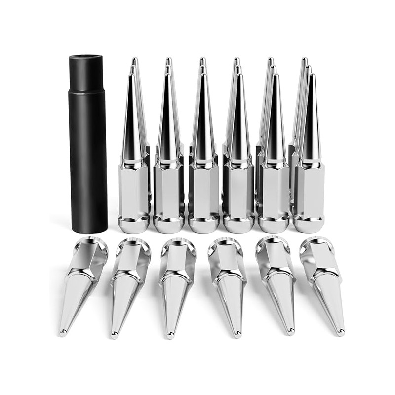 14x1.5 Spiked Lug Nuts 6x5.5 Chevy, Chrome Spike Lug Nuts Chevy Silverado 6 Lug Conical Bulge Seat with 1 Socket Key Fit Silverado Suburban GMC Sierra Yukon Dodge Ram 1500 Ford F150 Aftermarket Wheel