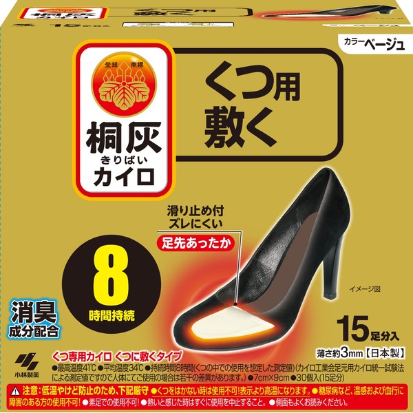 桐灰カイロ くつ用 貼らない カイロ 中敷きタイプ ベージュ 15足入 消臭