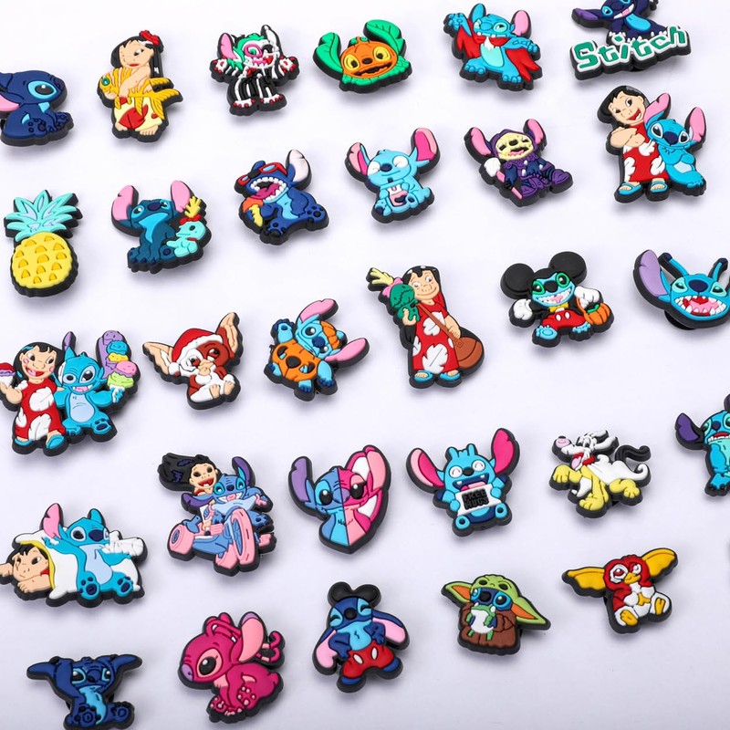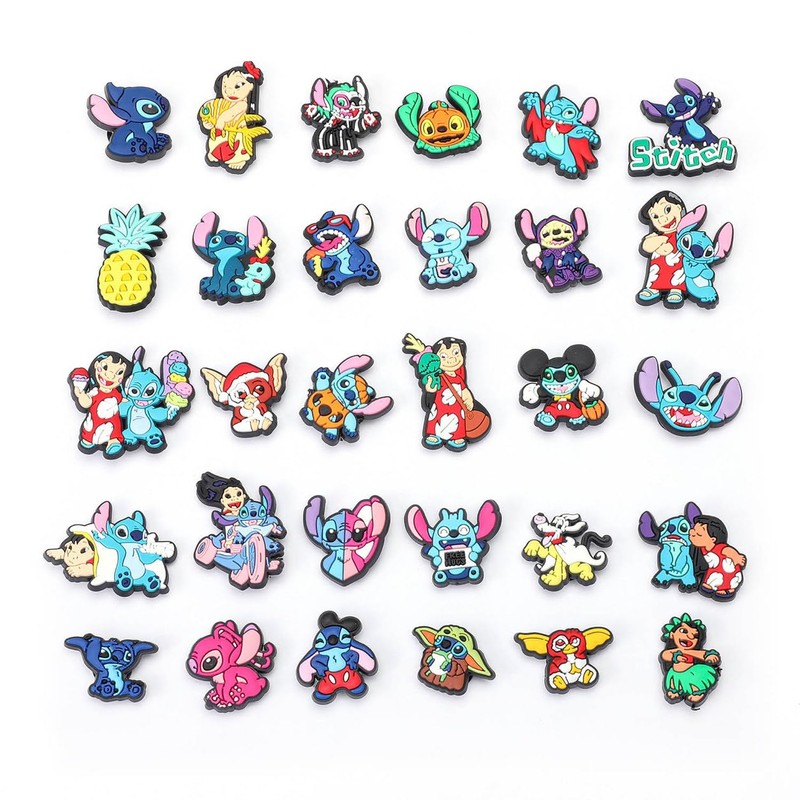 15, 30, Mixed, Girl Or Boy Superhero Famous Cute Cool Funny Random Colourful Shoe Charms Decorations For Croc Clog Shoes, Bracelet And Wristband For Women & Men No Duplicates (30 Lilo And Stitch)