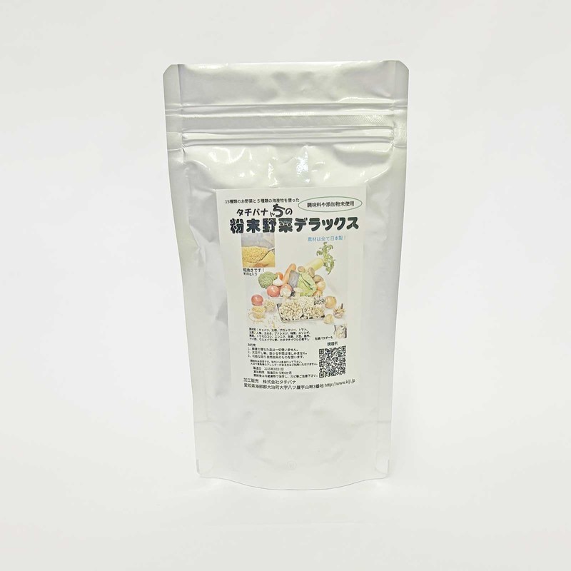 国産素材に拘り、添加物未使用です。出来立てをお届けできるよう、受注後に生産しますので、発送まで1〜2週間いただいています。早期納品や大量生産は出来ませんので、予めご了承の上でご注文下さい。 原材料は15種類のお野菜と5種類の海産物です。簡単に多種の野菜を摂取したい方にお勧めです! ・多くの材料から出汁もたっぷり出ますので、お肉やお魚の味も引き立てます!野菜嫌いの方にコッソリ使えるかも知れません!原材料:大根、キャベツ、ブロッコリー、トマト、人参、玉ねぎ、しいたけ、えのき、ブナシメジ、エリンギ、舞茸、サバ節、ウルメイワシ節、煮干し(カタクチイワシ)トウモロコシ、ニンニク、昆布、ショウガ、大豆(きな粉)、牡蠣パウダー   *素材は全て日本製です。アレルギー物質:大豆、魚、貝   賞味期限:6カ月  開封後は密閉容器に移し替え、カビ等に注意をしながら冷蔵庫で保管し、1カ月以内に使い切って下さい。 遺伝子組み換えの大豆、トウモロコシは使用していません。 大豆以外のお野菜は、生の原材料を使用していますので、ご使用の際は、必ず加熱調理してください。