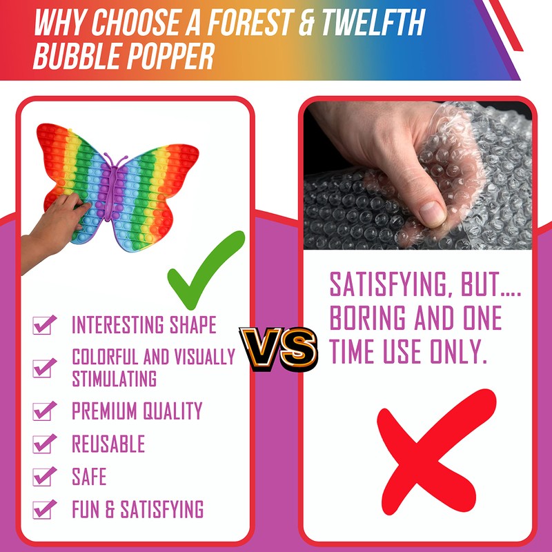 - BUTTERFLY FIDGET TOY: This 15.5” mega sized bubble popper toy is going to be an instant favorite for your little girl. It provides a fun way to keep boredom at bay, and the large size makes it perfect to share the fun with siblings or friends. It helps with child development, and ideal for ADHD and autistic kids.