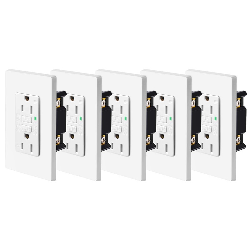 15 Amp GFCI Outlet,NineLLeaf 5PK GFCI Electrical Outlet Receptacles with LED Indicator, Weather Resistant with Wall Plate,Residential & Commercial Grade,Outdoor or Indoor Use,ETL Certified,White