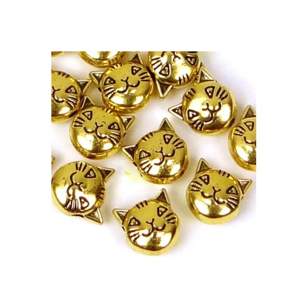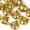 15 Antique Golden Pewter Cat Head Face Bead Kitty Pet Animal 2 sided 8mm