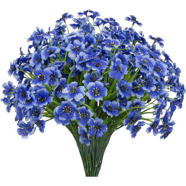 15 Bundles Artificial Flowers UV Resistant Outdoor Plants No Fade Faux Plastic Shrubs Fake Silk Flowers Window Box Garden Porch Home Decoration(Blue)