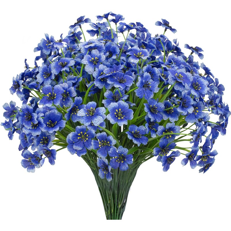 15 Bundles Artificial Flowers UV Resistant Outdoor Plants No Fade Faux Plastic Shrubs Fake Silk Flowers Window Box Garden Porch Home Decoration(Blue)