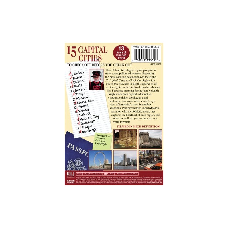- 15 GREAT CITIES YOU MUST VISIT - Everyone has at least one place to visit on their bucket list, and this DVD set collects 15 of the greatest national capitals that should be on yours.