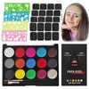- 91 unique design elements: unlock endless creative possibilities with our body colour palette with brush stencil, which offers an unparalleled collection of 91 unique design elements. With 32 sticker templates and 59 stencil patterns, this body painting set for children carnival makes any event, party or special occasion unforgettable.