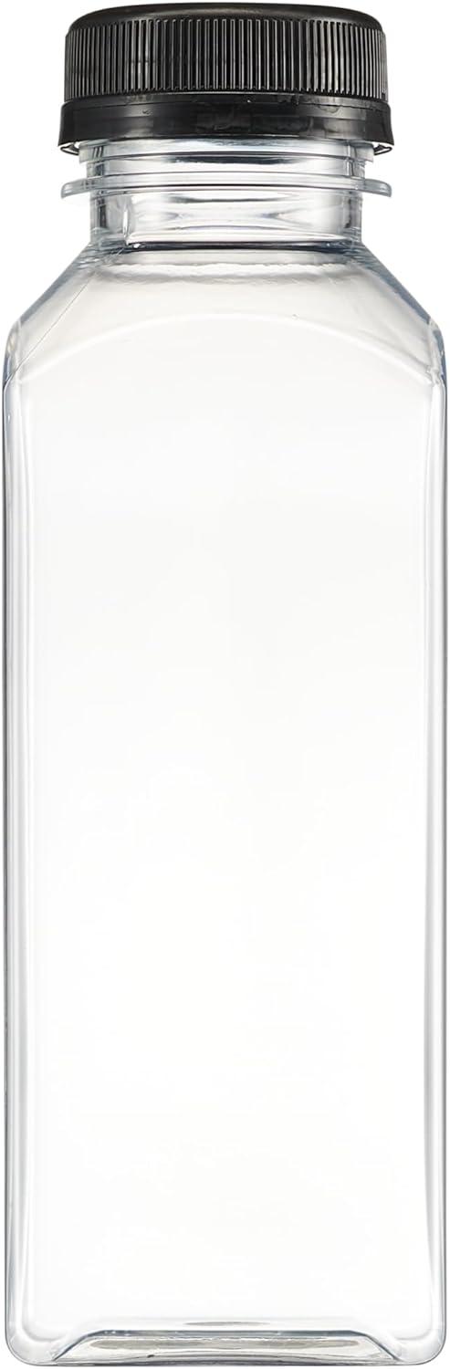 [15 Count - 12 oz.] Reusable Plastic Juice Bottles With Caps, Labels, Brush, and Silicone Funnel | Clear Juice Containers for Juices, Water, Smoothies, and Other Beverages - Color: 8 oz. - Clear