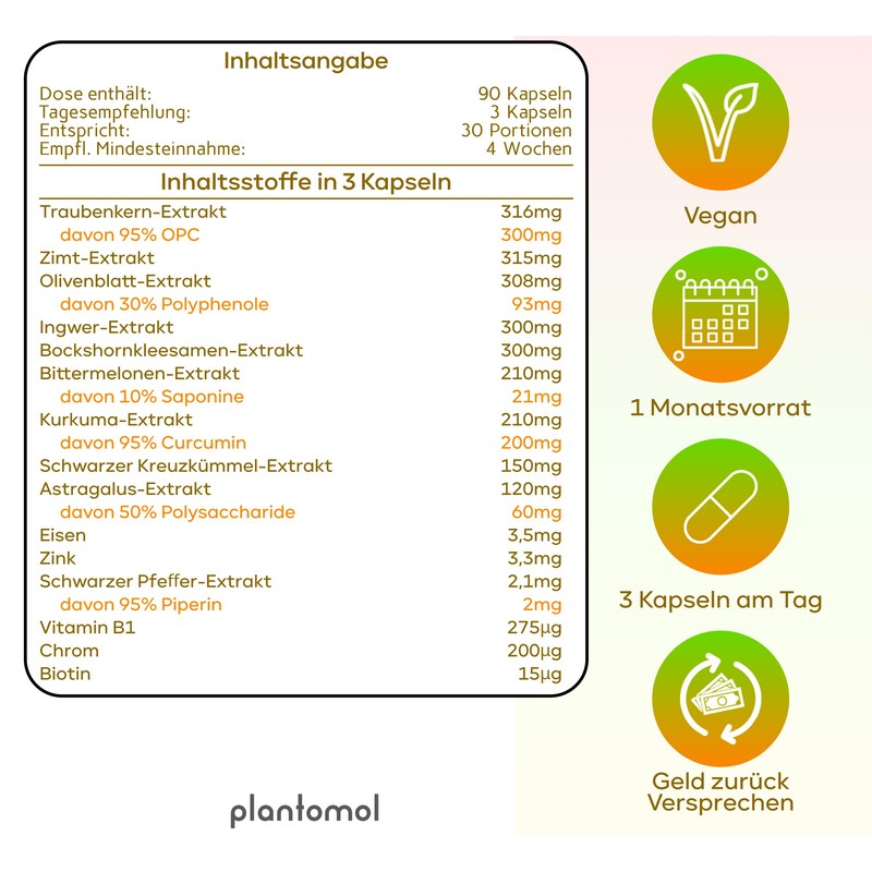 - ✅ Geld zurück - Solltest Du nicht zufrieden sein! Teste den Blutzucker Komplex Kapseln von plantomol! Wir können keine Aussagen zum Blutzucker-Senker gemäß VO (EG) Nr.1924/2006 treffen