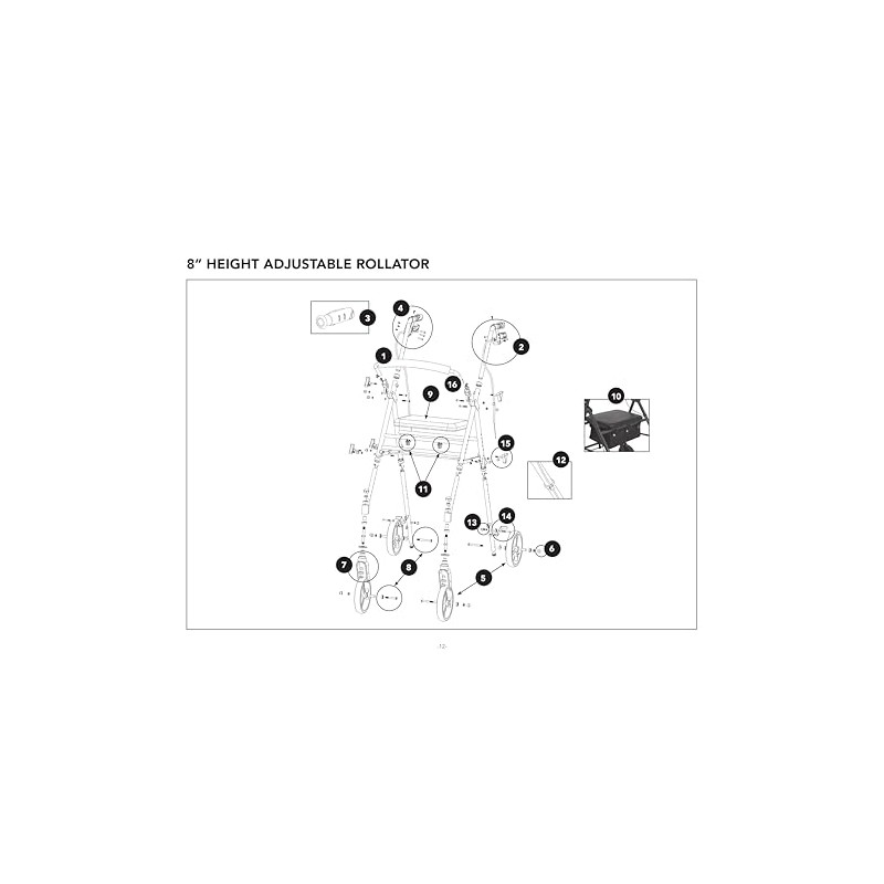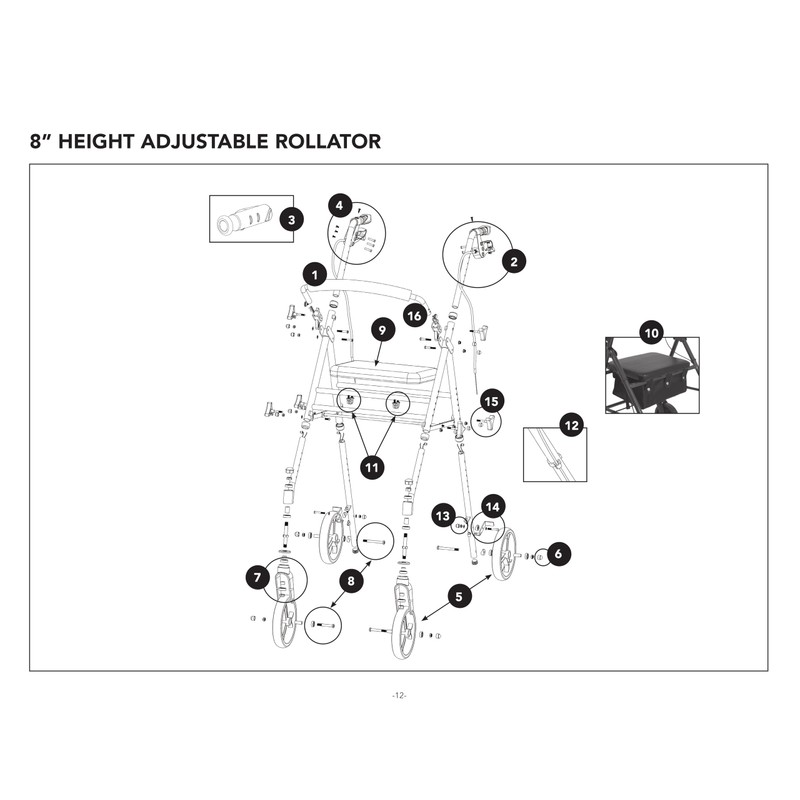 - For ProBasics 8" Height Adjustment Rollator Model RLAA8