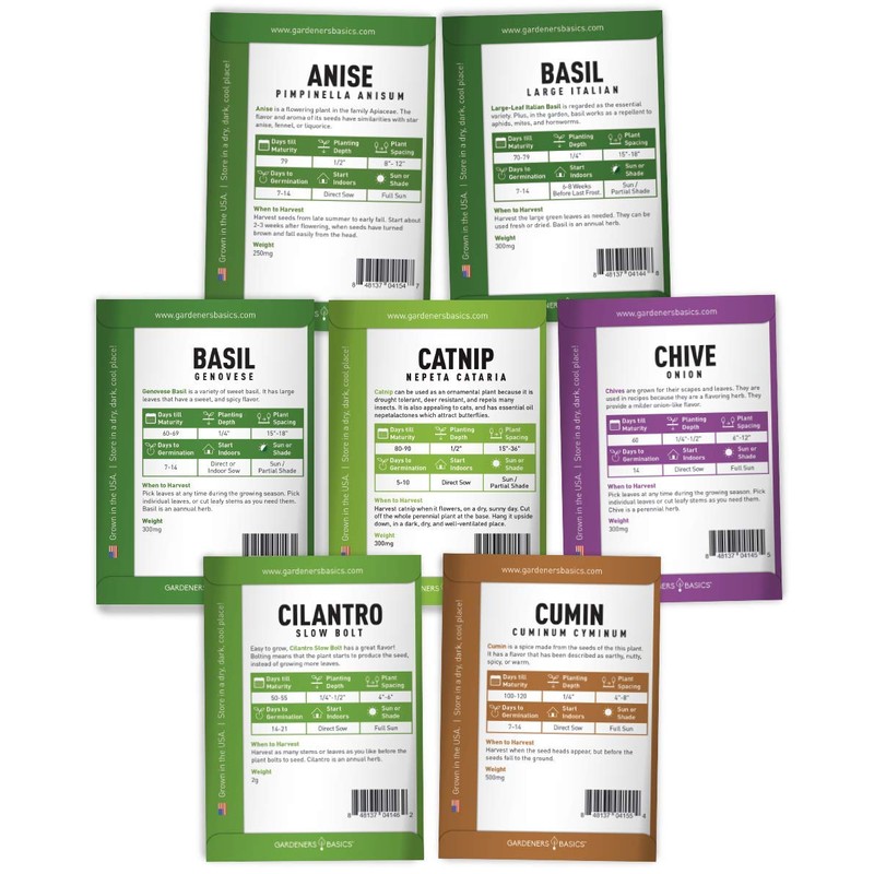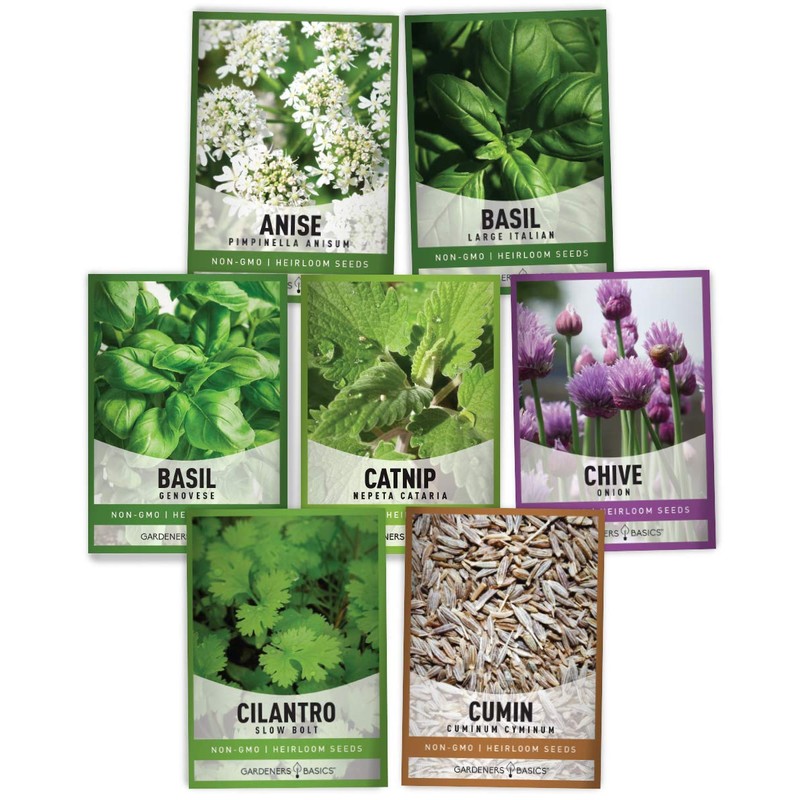 - 15 VARIETIES HERB SEEDS VARIETY PACK - 15 of our most popular herbal garden seeds, including; Anise, Large Leaf Basil, Genovese Basil, Catnip, Chive, Cilantro, Cumin, Dill, Oregano, Flat Leaf Italian Parsley, Peppermint, Rosemary, Sage, Summer Savory, and Thyme.