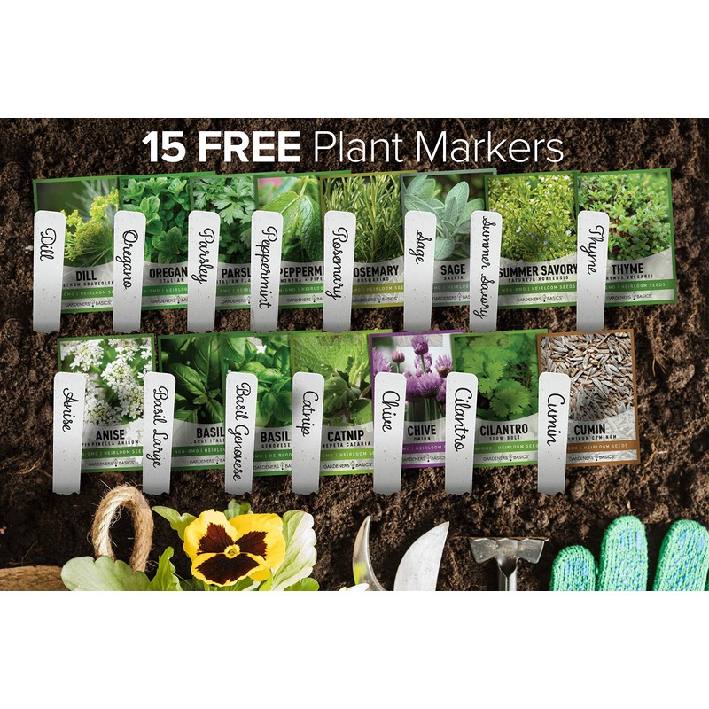 - FREE BONUS - 15 Free plant markers to help you keep track of what herb seeds for planting indoors and outdoors you planted where.
