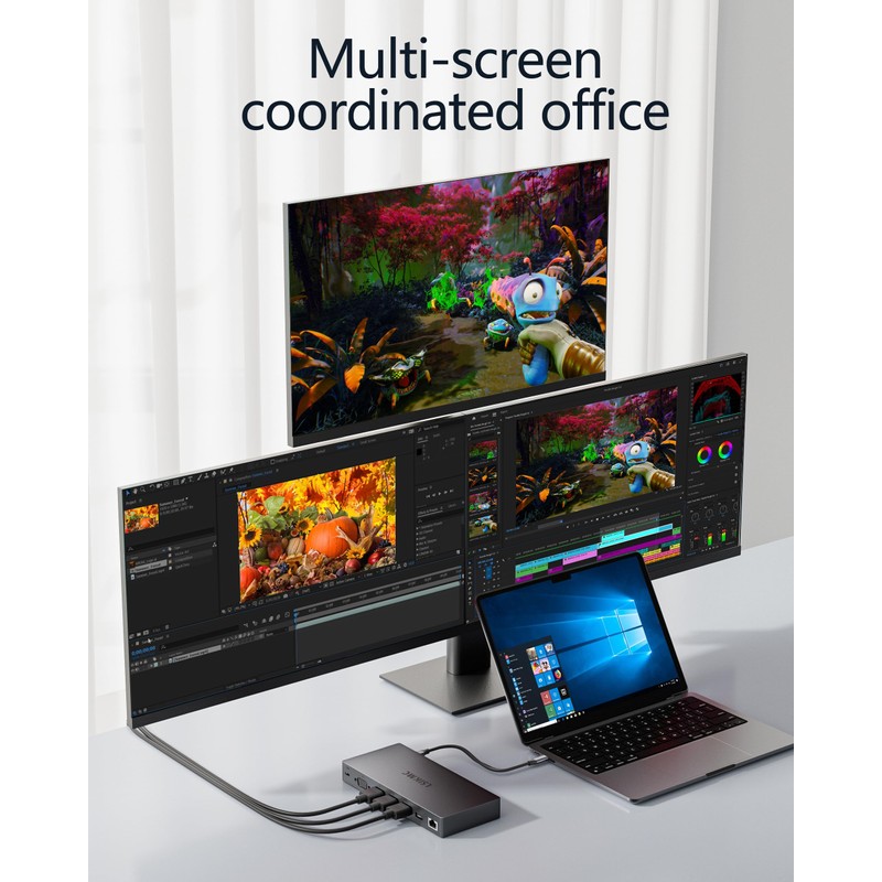 - Optimized Multi-Display Experience: The docking station supports MST and SST modes on Windows, offering 4K@60Hz resolution via HDMI and DP ports for an exceptional visual experience. For macOS users, it enables mirrored 4K display, though extended mode is limited to one additional screen. This setup significantly enhances complex work tasks, immersive learning, and high-quality gaming experiences.