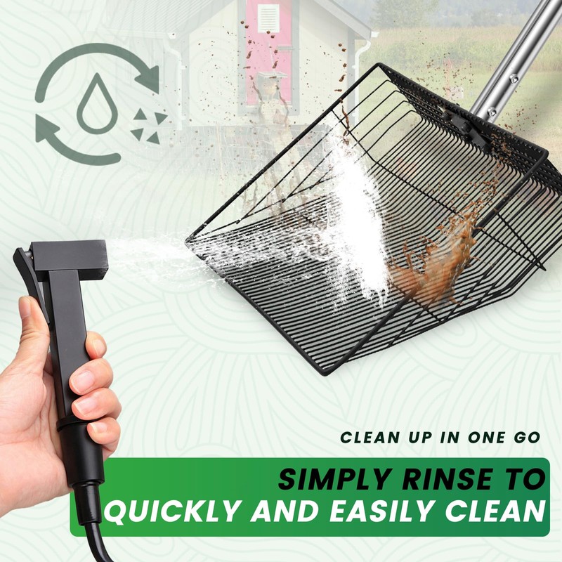 - 15" Widened Metal Shovel Head : This chicken poop scooper is equipped with a metal shovel head and rustproof stainless steel handles , 38 cm/15 inches widened design , large cleaning area in a single pass , saving cleaning time. Compared with 10" wide shovel surface, our 15" can maximize efficiency while minimizing repetition.