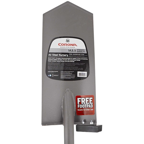 - Spade with a 15-inch diamond blade for cutting through tough soil, roots, or sod with ease