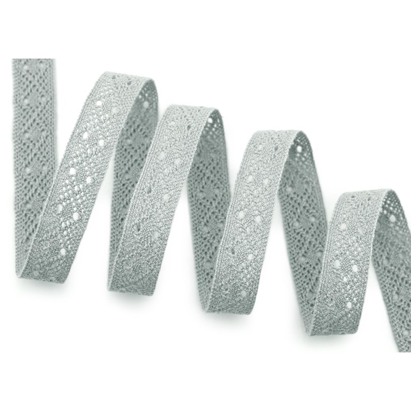 15 m x 15 mm Lace Ribbon Florence Grey Light Grey Lace Crochet Ribbon 100% Cotton Natural Decorative Ribbon Crocheted Lace Trim degradable Environmentally Friendly for Sewing and Decorating