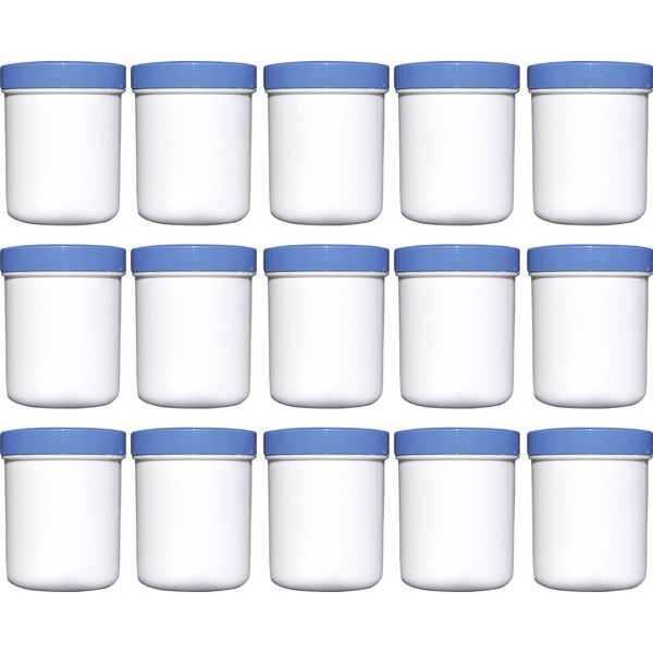 15 Ointment Jars, Cream Jars, High Ointment Jug, 35 ml Capacity, with Blue Lid, Made in Germany