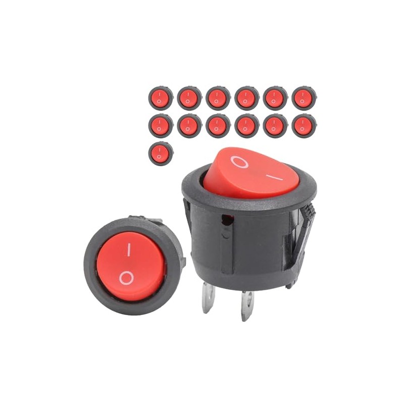 15-Pack Round Rocker Toggle Switch, ON/Off SPST 2Pin Heavy Duty 10A Boat Switches for Home Auto Car Marine Boat, KCD2-101, Red