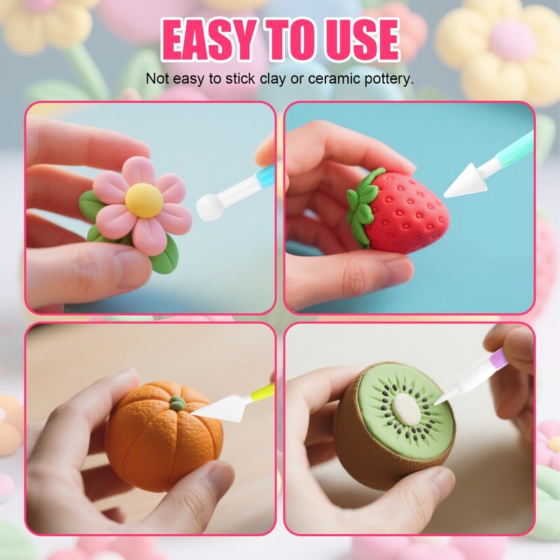 • Polymer Clay Cutter Tools: You will receive an acrylic roller pin, 8 pcs clay sculpting tools, 4 pcs dot tools, a clear rectangle board. Air dry clay tools in different shapes meets different needs and is easy to carry and use