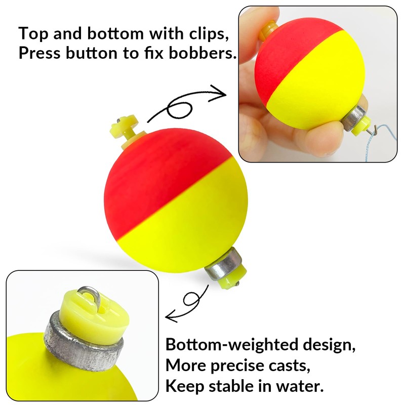 - Weighted Design for Accurate Casting: Each fishing bobber features lead weights for stable flight reduced line tangles and upright water positioning, allowing for more precise and long-distance casts.