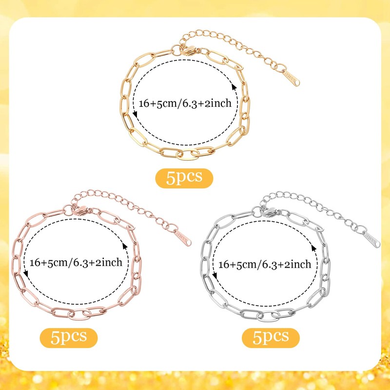 - 【Product Details】Our package contains 15 paperclip chain, available in gold and silver、rose gold, to meet your daily wearing and replacement needs, the charm bracelet chain is facilitate you to easily make jewelry decorations