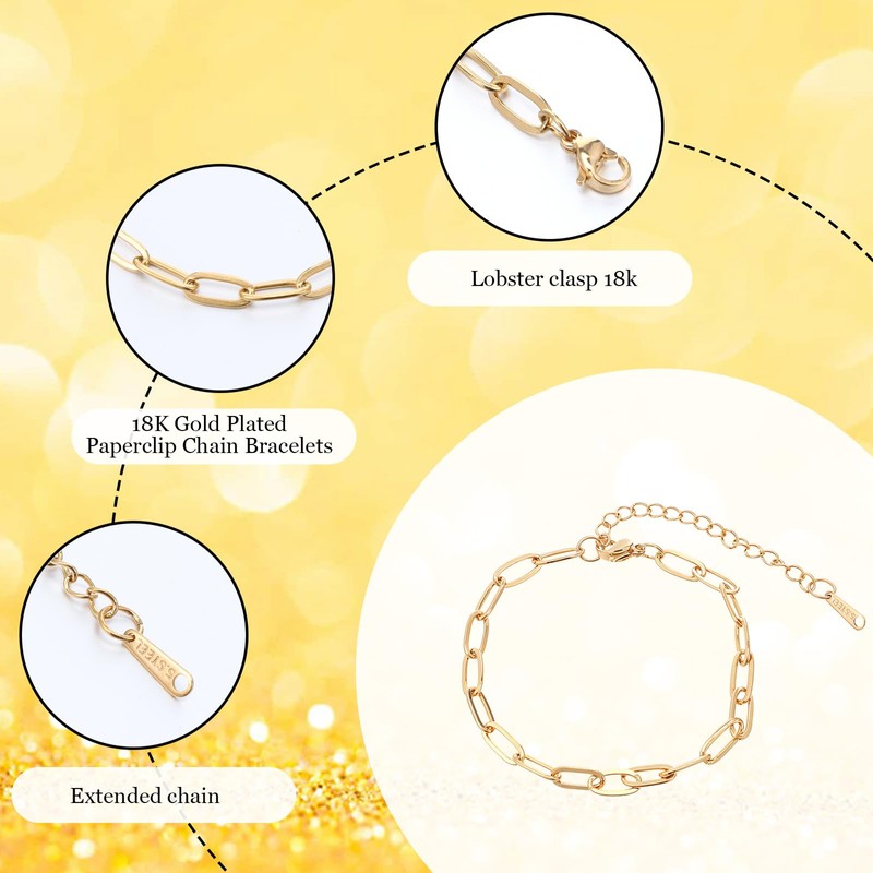 - 【Reliable Material】Our paperclip bracelets are made of high-quality stainless steel with 18K gold plated coating, which is tough and durable, not easy to be damaged or deformed, and the lightweight material ensures comfort for long-term wearing