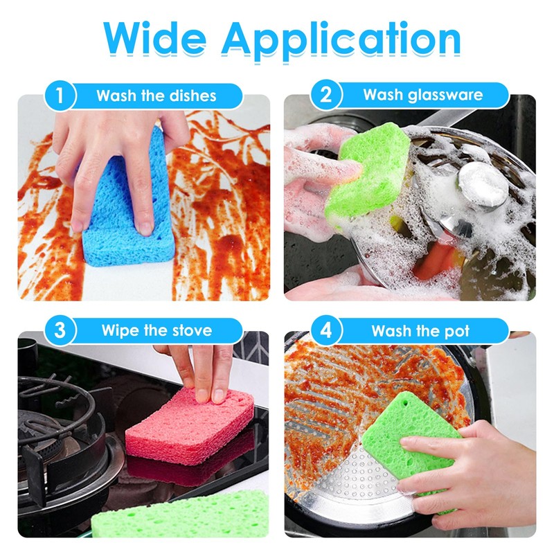 - Versatile Multi-Purpose Use: More than just dish sponges, these cellulose sponges are versatile enough for a variety of cleaning tasks around the home. From scrubbing pots and pans to wiping countertops, sinks, and bathroom surfaces, kitchen sponge are a reliable tool for keeping your entire house spotless.
