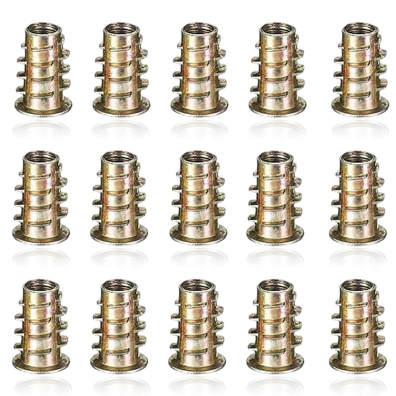 - WIDE APPLICATION: These inserts are great for furniture assembly, cabinets, and a variety of woodworking projects. Suitable for softwoods such as lumber, plywood, fiberboard, etc., providing a secure threaded connection that works well in furniture assemblies