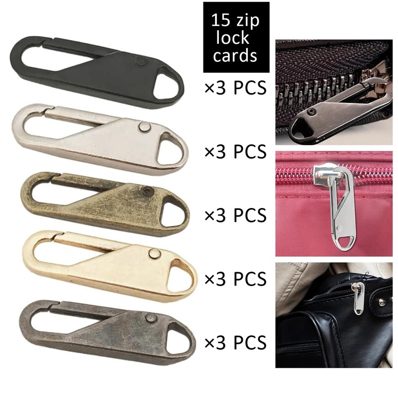 15-Piece Set of Heavy Duty Zipper Grippers, Universal Replacement Pull Tabs for Clothing, Jackets, Pants, Jeans, Purses, Bags, and Crafts - Includes 5 Assorted Colours