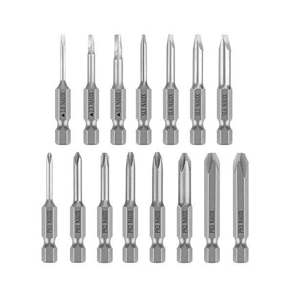 15 Piece Slotted Phillips Triangle Screwdriver Bit Set, 1/4 Inch Hex Shank S2 Steel Magnetic 2 Inch Long Drill Bits