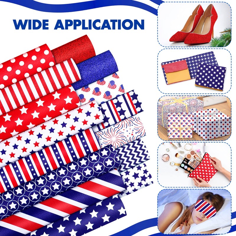 • Classic design: these faux leather sheets are designed with many elements of American flag, such as red white stripes, red white stars and red white hearts and so on, please refer to the pictures for more details, a full collection of gorgeous American flag faux leather sheets