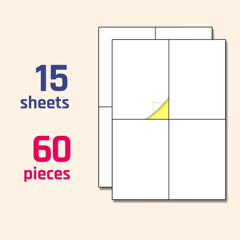 15 Sheets, 60 Pieces - Large Sticky Labels for Storage Boxes, A4 Printing Printer Labels 4 per Sheet - 148.5 x x 105 mm (A6)
