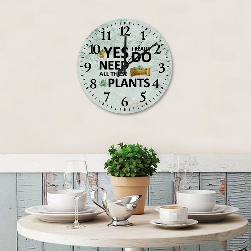 15" Silent Non-Ticking Wall Clocks Yes I Really Do Need All These Plants Home Decoration for Living Room Succulent Teachers Gift Classroom Retro Round Wooden Wall Clock Country for Cabin Restaurant